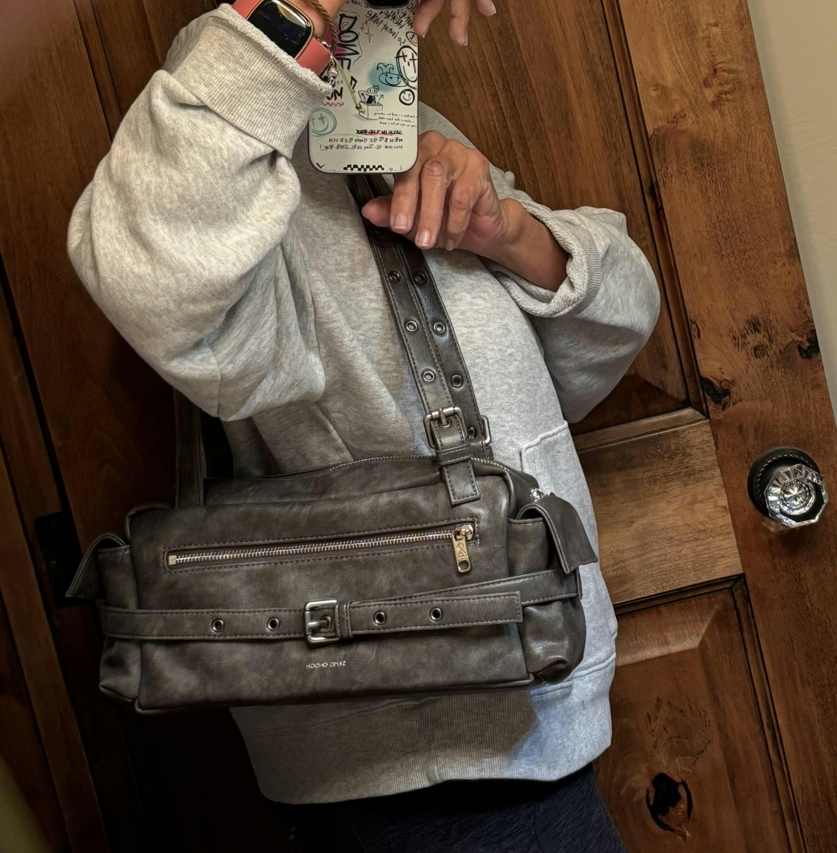 They can damage the surface, causing discoloration, cracks, or peeling. Always dry your hands completely after using hand sanitizer before handling the bag. - Avoid Direct Sunlight: Long exposure to sunlight may cause fading, hardening, or cracking. Store in a shaded, and well-ventilated place.