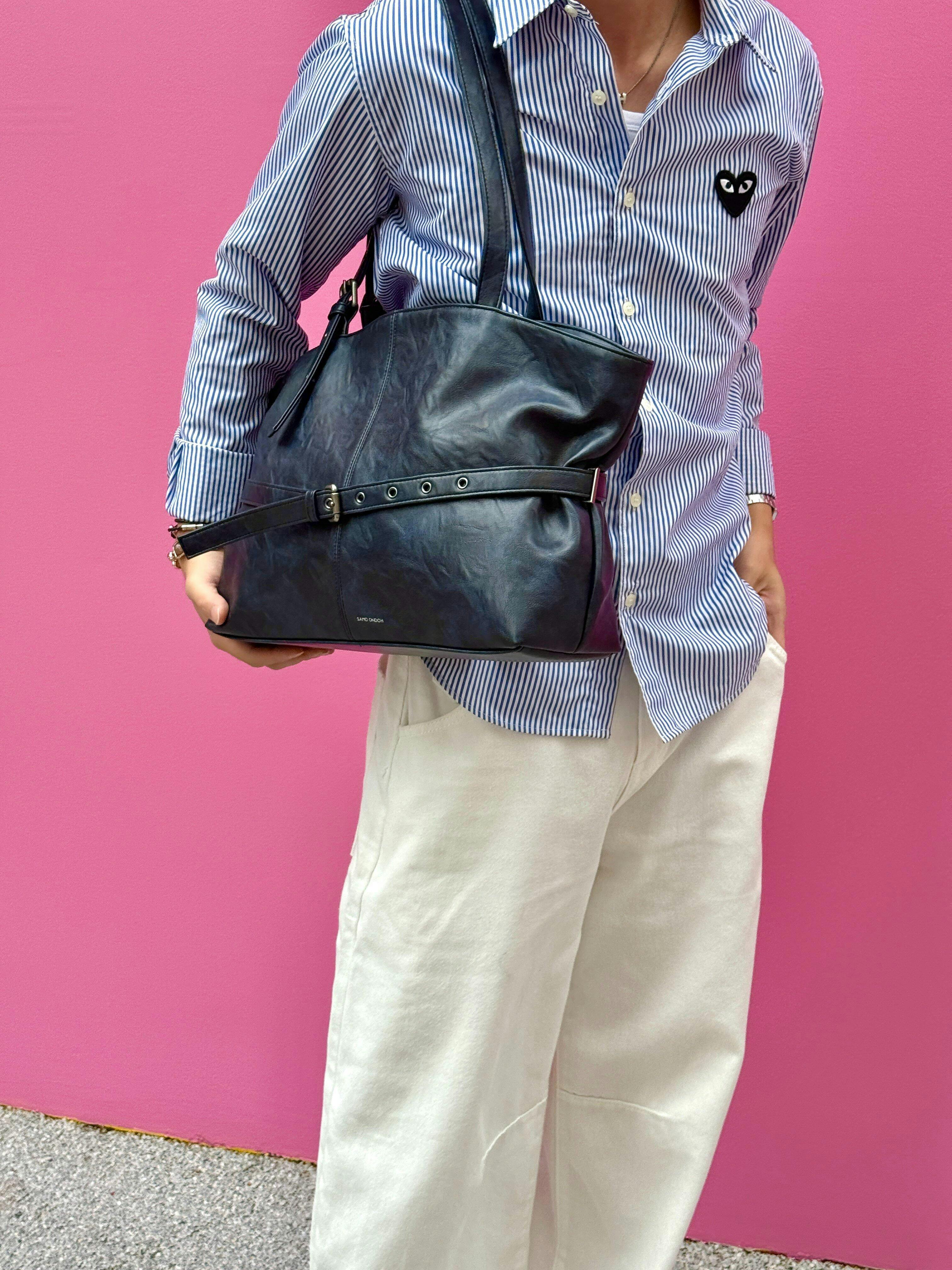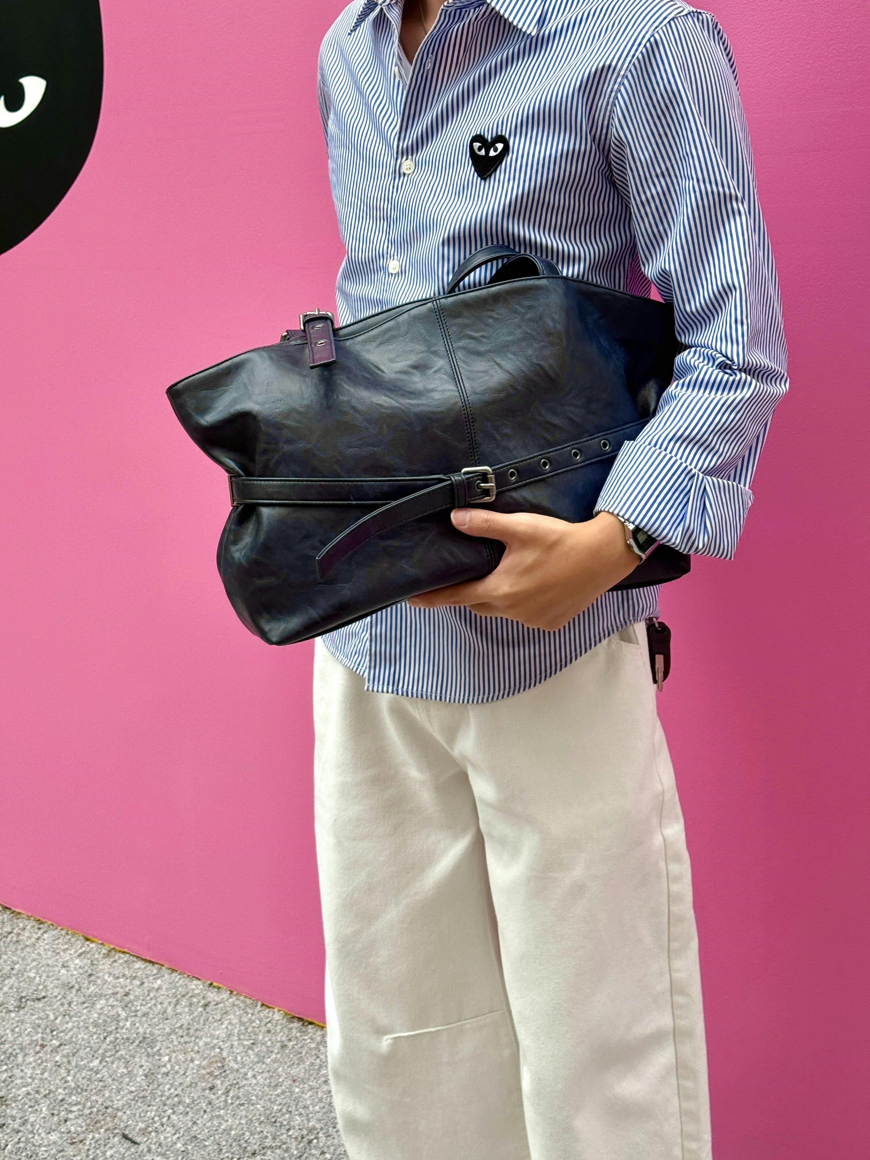They can damage the surface, causing discoloration, cracks, or peeling. Always dry your hands completely after using hand sanitizer before handling the bag. - Avoid Direct Sunlight: Long exposure to sunlight may cause fading, hardening, or cracking. Store in a shaded, and well-ventilated place.
