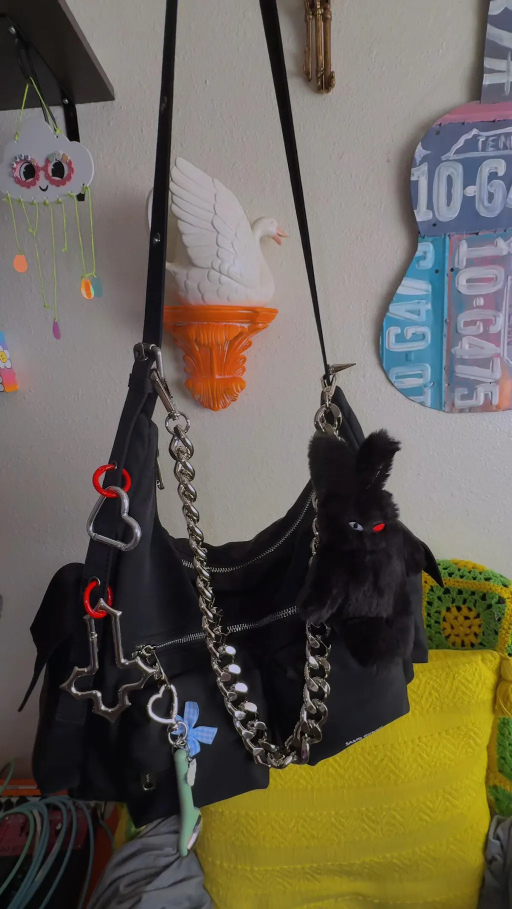 - Fill the bag to help maintain its shape. Keep it in a dust bag in a well-ventilated area. Do not use plastic covers.